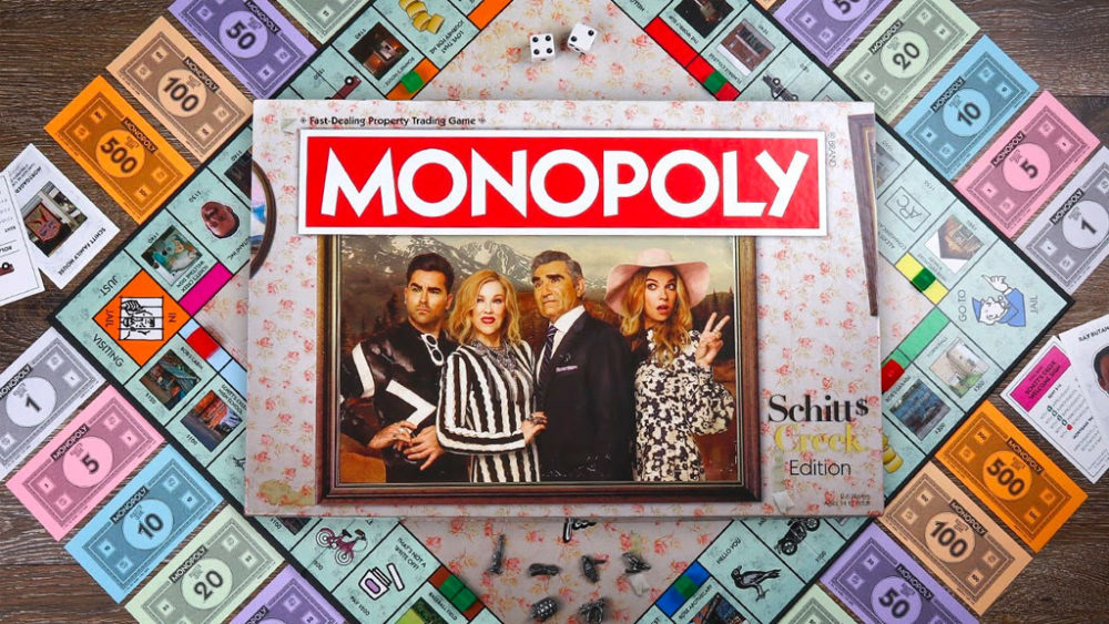 Regroup the family and your dignity to make your way up in MONOPOLY: Schitt’s Creek, based on the hilarious Emmy Award-winning comedy series. Join the Rose family on opportunistic adventures as you buy, sell, and trade popular locations from the show, including The Rosebud Motel, Bob’s Garage, Herb Ertlinger Winery and more. Celebrate tongue-in-cheek victories with Hello You and Love That Journey for Me cards, while rent and taxes like Roland’s Truck and “That’s Not a Write Off!” make or break your small-town struggle to come out as the richest little townie and win!